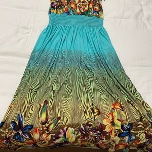 Worn once then never again, like new, patterned stretchy sundress. Not exactly sure where from since it was a gift but the tags are shown! Measurements shown, stretchy material. Size Large / XL