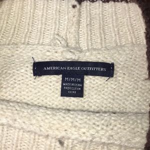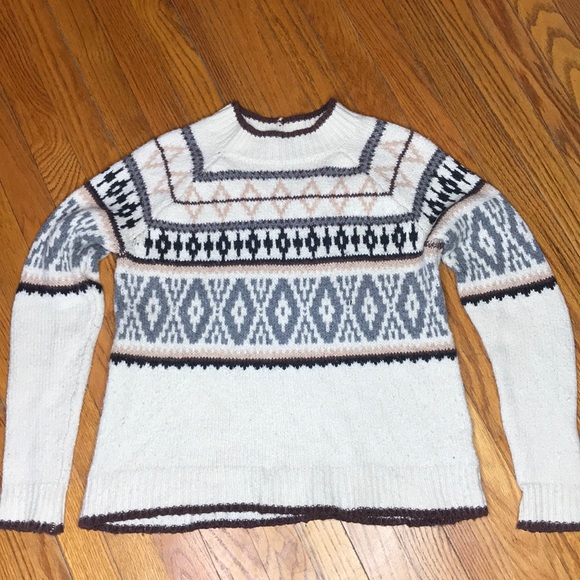 warm, beautiful wintery pattern, cream colored with maroon, blue-gray, tan patterns. worn twice