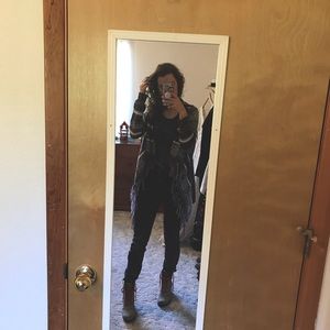 This classic, open sweater is perfect for late fall adventures. It has a rustic charm, while still suitable for many kinds of occasions. Or just enjoying at home.