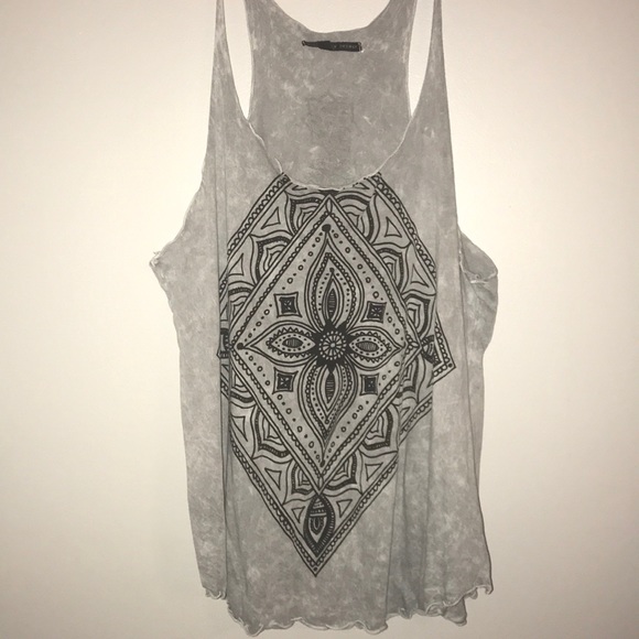 Patterned tank top with acid wash. Looks nice with strapless bras or bralettes. Only worn once.