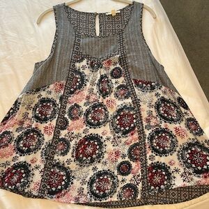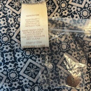 Dual patterned. Never worn. Shoulder to seam: 26”. Armpit to seam: 16.5”. Armpit to armpit (from the bottom): 19”.