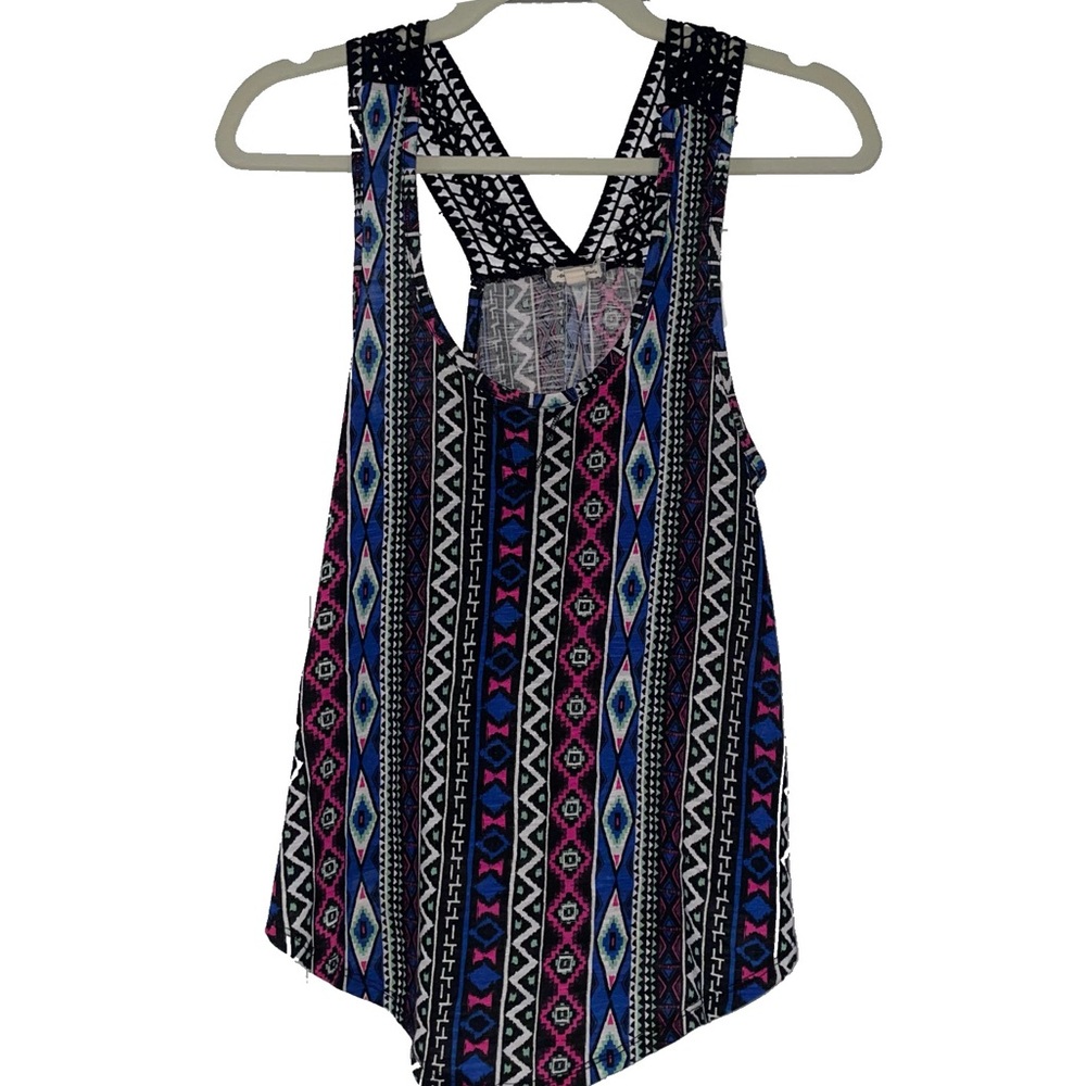 Patterned Tank Top With crochet straps, scallop bottom hem