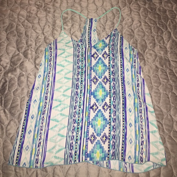 Teal/Navy/Green/White patterned tank top, barely used, excellent condition