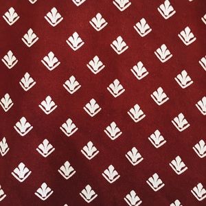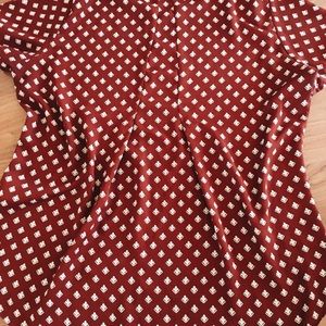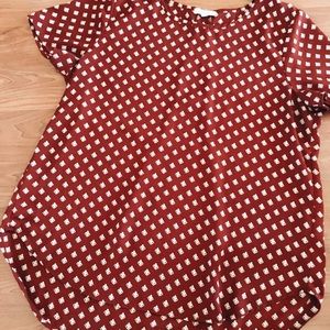 Gorgeous burnt red and cream patterned top. Super flattering and comfortable! Stitched gathering/detailing on the back.