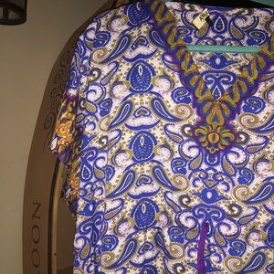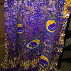 A light V-neck! This tunic goes down to my feet and I am 5’7. Super good summer coverup. Lightweight and seethrough.
