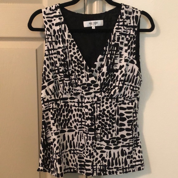Black and White Patterned V-Neck Blouse Size M