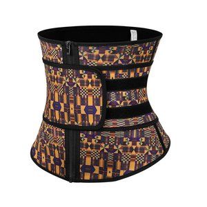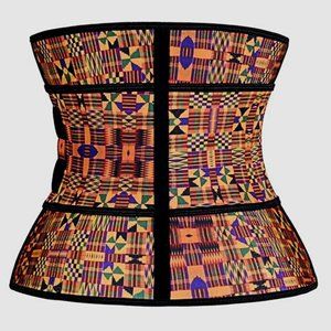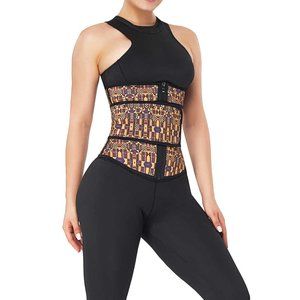 Enhance your silhouette with this stylish patterned waist trainer. Featuring a sleek black design with vibrant multicolor accents, this shapewear is perfect for any wardrobe, it measures 26" around, & it's in excellent pre-loved condition.