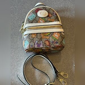Stylish women's backpack with a playful pattern. Features a mix of colors for a vibrant look.