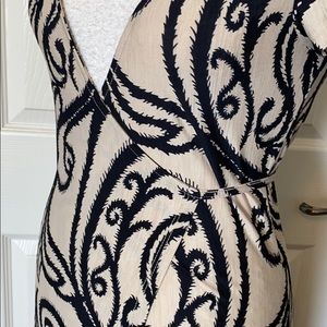 Tan and black slinky wrap dress. Material is stretchy