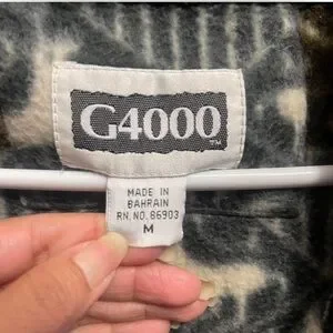 #7 G4000 medium Brown, green,white and black fleece zip-up jacket pit to pit 25 inches length 28 inches in did not notice the sticker on the sleeve please discard the flower sticker I have removed it Stylish zip-up jacket with a unique pattern. Features shades of brown, green, and cream.