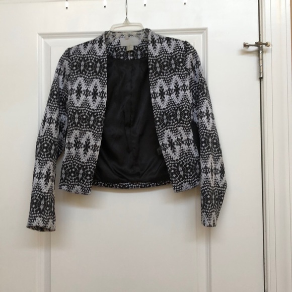 Short patterned black and white blazer. Great for professional settings!