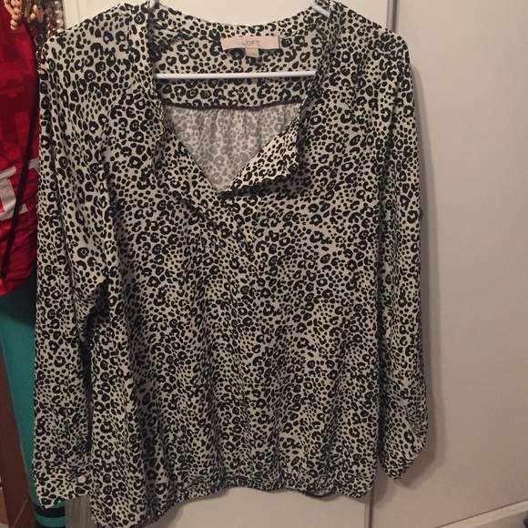 Loose leopard print patterned open front blouse with elastic at the bottom.