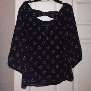 Navy blue, flying birds patterned blouse.. size small, loose fitting (prettily flows away from the body).. worn once, in perfect condition.