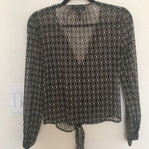 Sheer, patterned top. Button down and tie front. Great for the office or for going or with friends