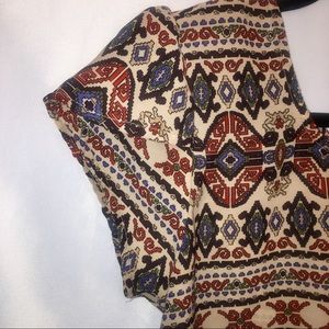 Dress up or down! Jewel toned pattern. Short, layered sleeves. Zipper at back. Polyester.