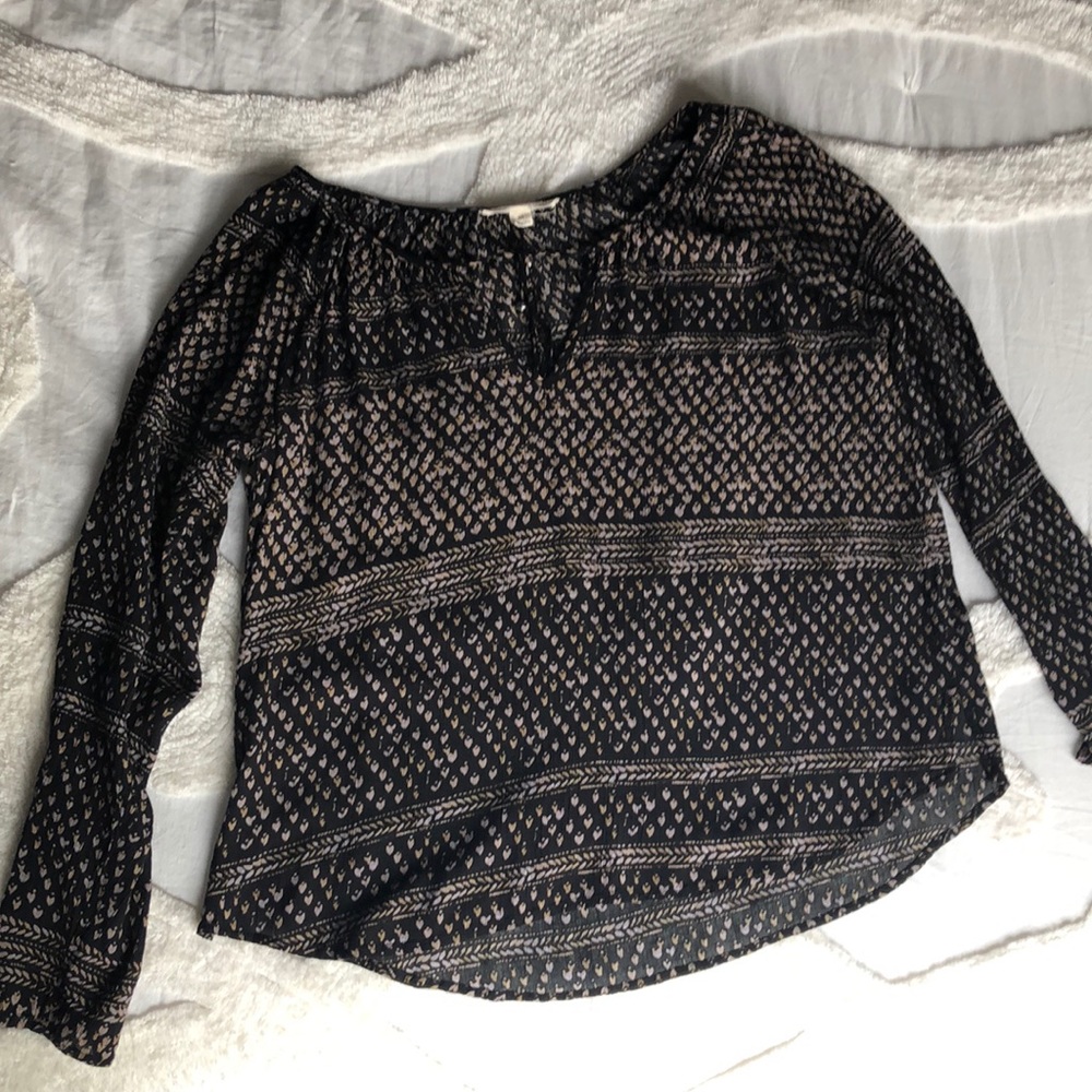 Beautiful blouse, can be dressed up with a leather jacket and heels or dresses down with a nice pair of jeans. Size is medium but fits on the smaller side.