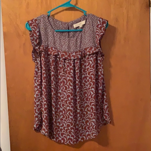 Patterned blouse if burgundy and light blue, never worn