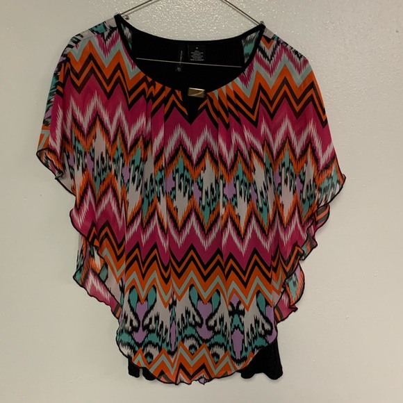 Patterned blouse - blank tank underlay with colorful patterned flowy overlay