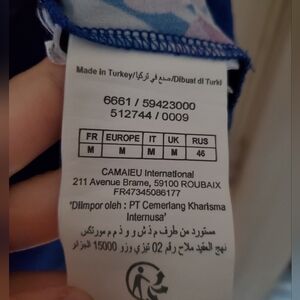 fun bright tropical print the back is plain blue.
