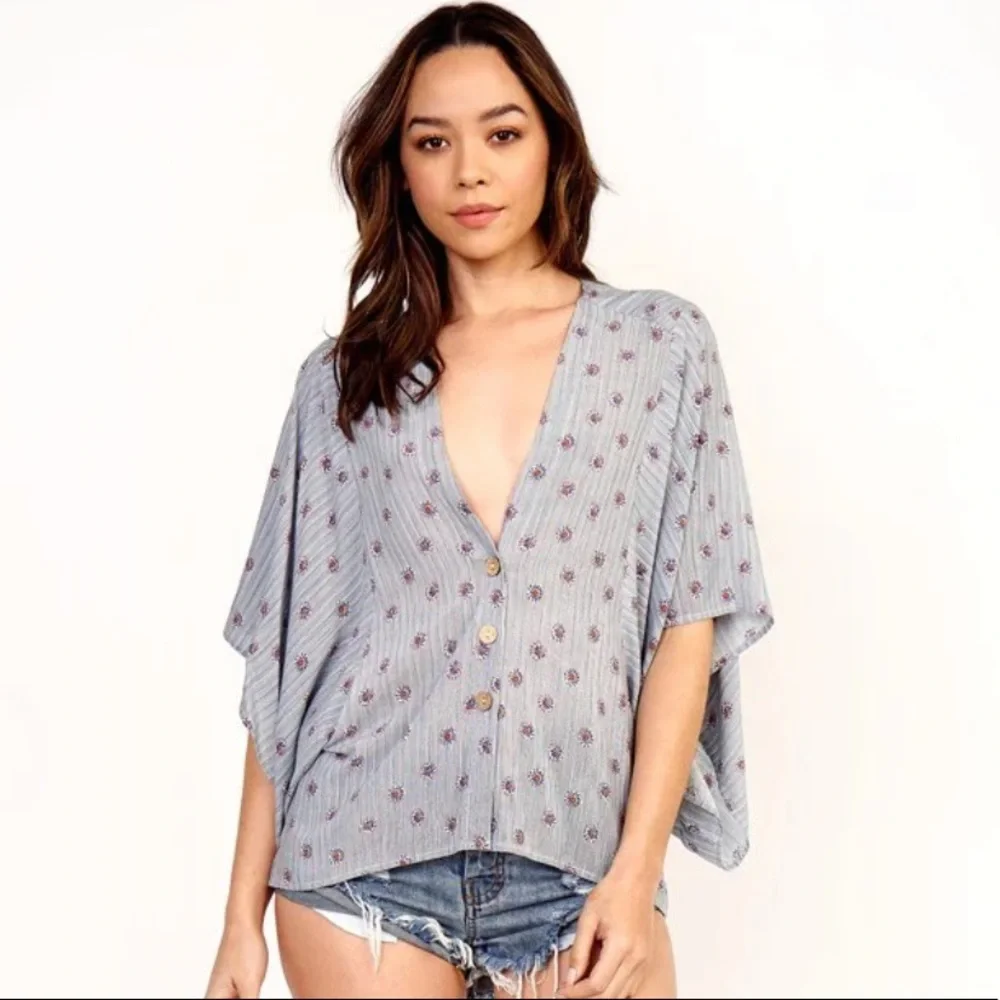 Patterned button down flowy short sleeve top
