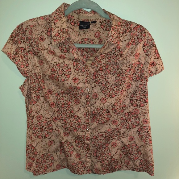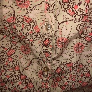 Colorful button up great for a date or work! It is Petite Large but fits me and I’m a small.