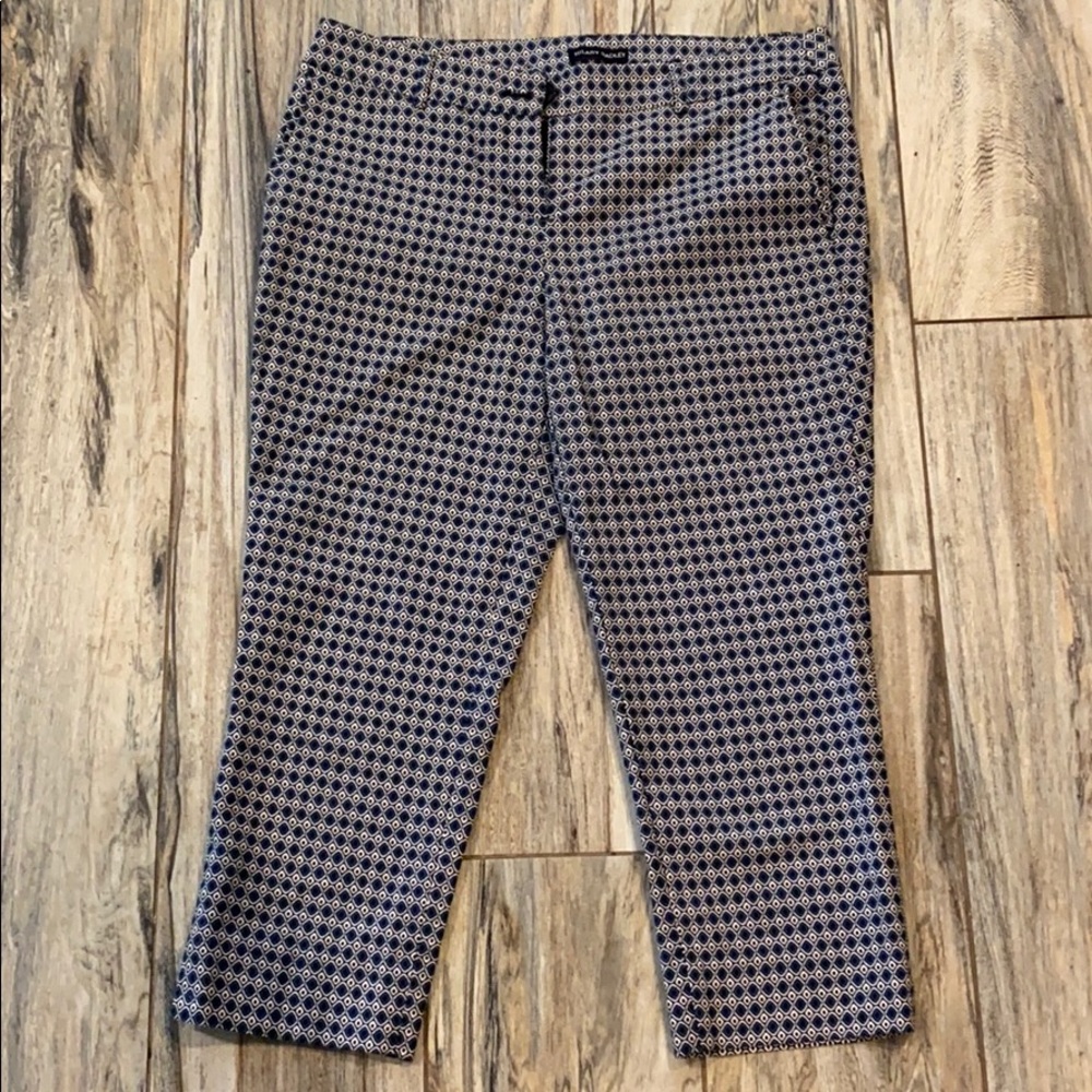 Black, white, and blue patterned capris. Comfy and cute for casual Friday.