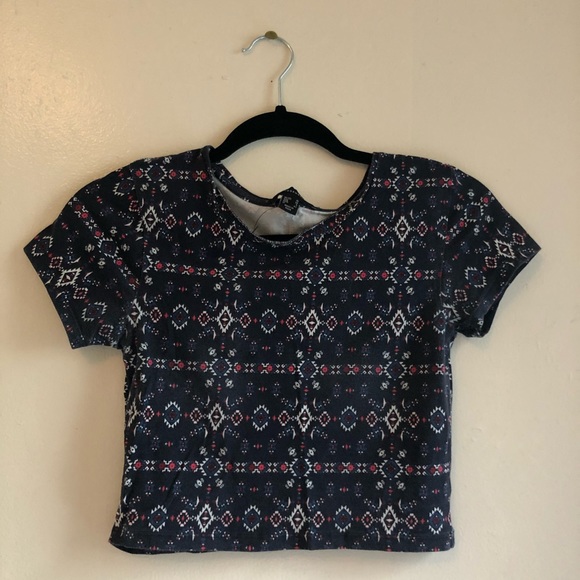 Beautiful blue patterned crop. Perfect condition, only worn once, 95% cotton