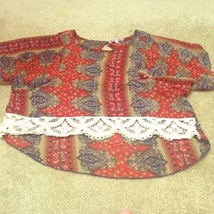 Worn once crop top that is barely see through and can be paired well with a cute bra or tank top. Can be worn with high-waited shorts/pants or regular pants to show a bit of the stomach off.