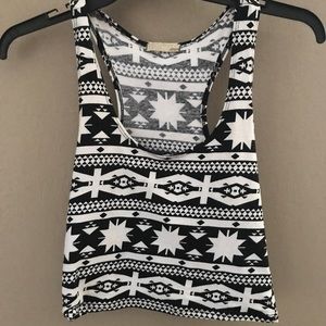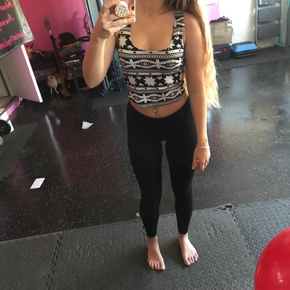 Black and white crop top. Fits nice and goes good with leggings for a comfortable look.