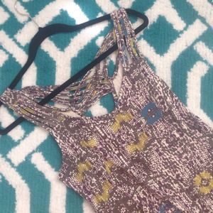 Crossed back with layered straps, stretchy