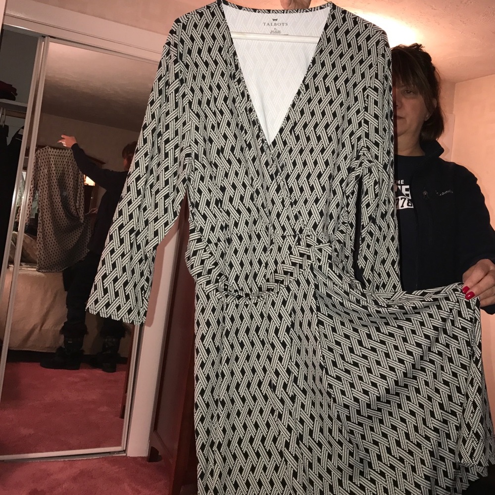 3/4 sleeve Polly talbots dress- black with white squares