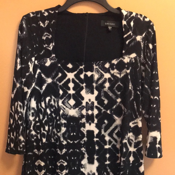 Beautiful black and white patterned dress, with zipper in the back. Lightly worn and in great condition.