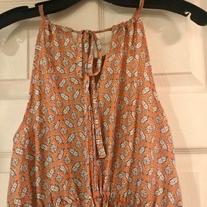 Patterned dress with halter tie neck. Cinched waist. Great condition only worn a few times. Fits more like a medium