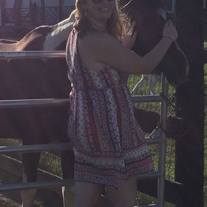Halter top patterned dress, I am 5’10 I included photos for length reference