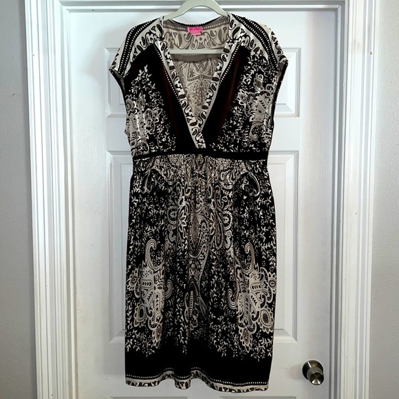 Brown, white, and tan patterned dress