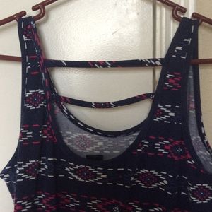 Navy patterned dress. It has magenta, blue & white patterns. It has an open dressy back (last pic) and has only been worn a couple times. Offers... Make them!