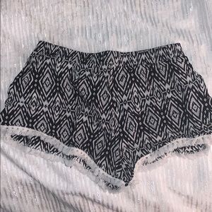 White and black pattern flowy shorts, in good condition, size large