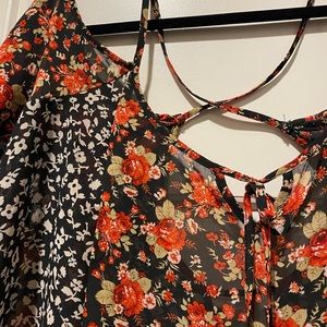 Super cute patterned top. Crisscross straps with off-the-shoulder sleeves. Slightly see-through, but fun going out too!