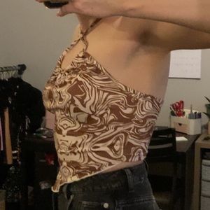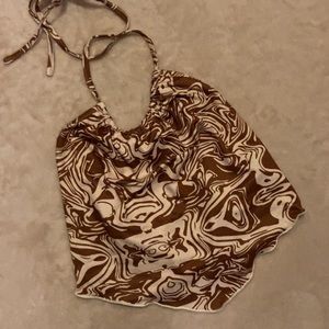 Brown and cream patterned halter top with tie at the neck. Like new condition made of a really soft fabric.