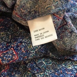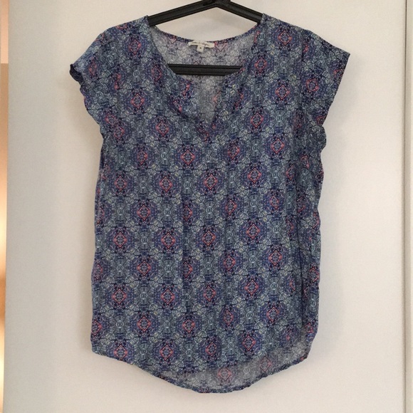 Blue/aqua shirt with colorful pattern. Size medium. Split/v-neck. Only worn a couple times. Light, summery material with some stretch.