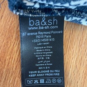 Super cute patterned mini skirt bought from a ba&sh in Portugal on an adventure in 2022! Absolutely adorable and very flattering on. There is a cool sort of wrap / pleat detail in the front (pictured) that makes it easy to walk in. Would make cute office wear with opaque tights (it hits just above the knee on me and I’m 5’5”), or would be great for a place where people wear more formal going out, dinner, drinks outfits - my city seems to think tennis shoes and polar fleeces are ok for nice dinners!