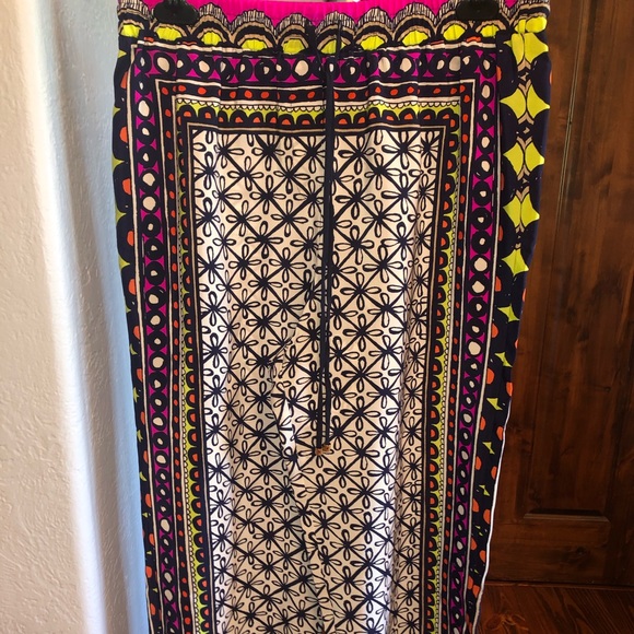 Patterned pants. Stretchy top with a draw string.