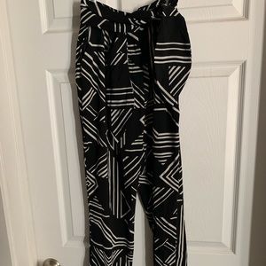 Size small black and white patterned ankle pants with tie- super cute