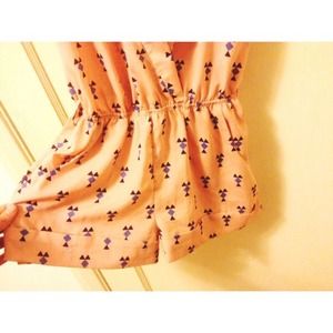 Very low-cut patterned romper (any solid color undershirt would be perfect) very fresh and cozy! Two front pockets that blend in. Would look great with a belt! :) *Only worn once*