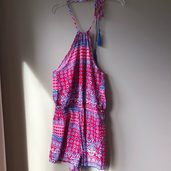 Red/pink patterned romper/coverup. Never worn. Thin material