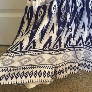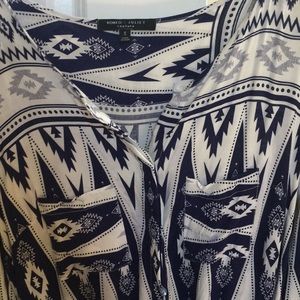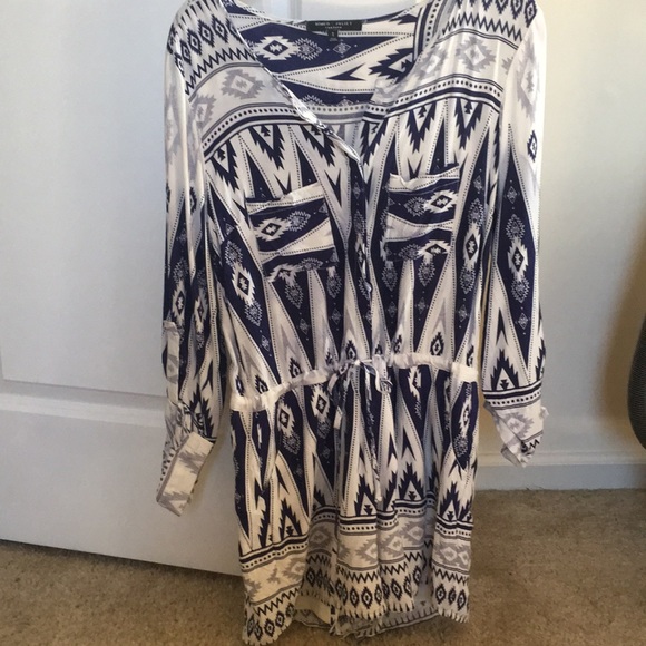 Blue and white patterned romper size small. Never worn. Washed once. Shorts and Long sleeves can be cuffed.
