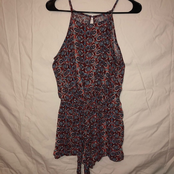 Xhilaration romper, size small, fits more like a medium, beautiful pattern, has a tie in the front around the waist, only been worn once or twice and still in great condition