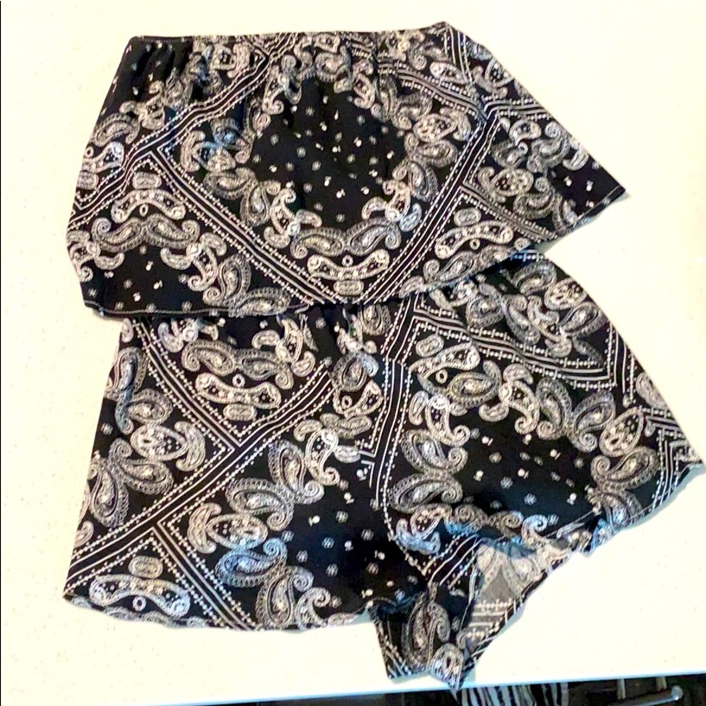 Black and white paisley patterned romper, strapless
