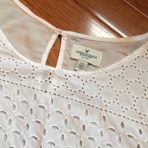Patterned shirt from American Eagle. A little stain on front of the shirt, along with some discoloration under arms.