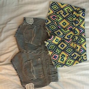 2 in 1!!! | Top pair: neon tribal print | bottom pair: black and white stripes with crochet decals